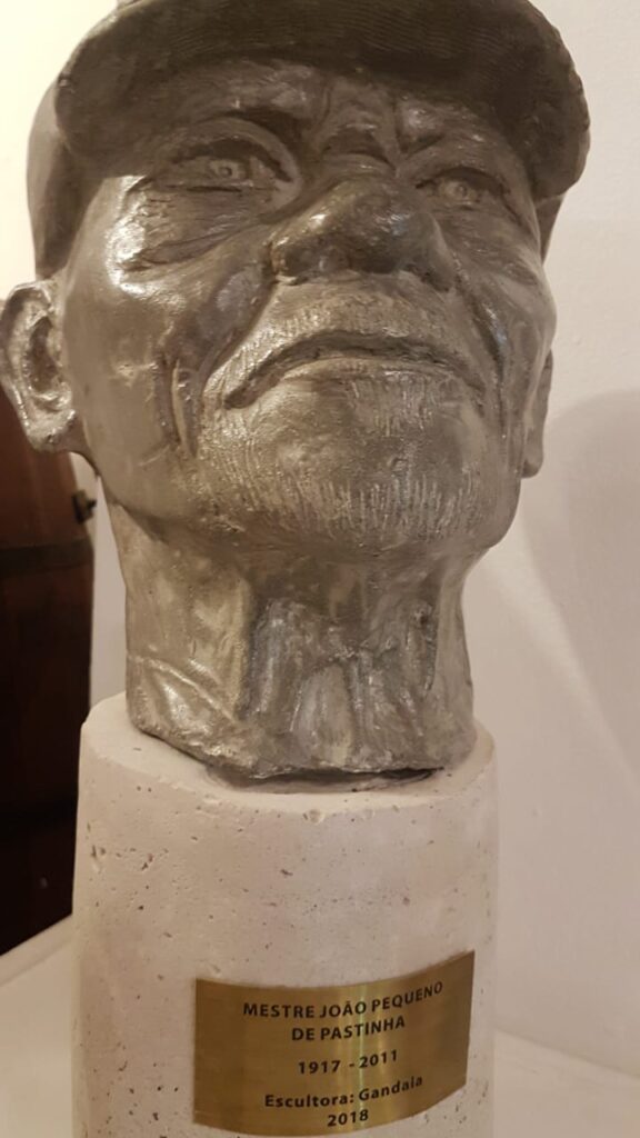 A escultura está no Memorial do Mestre João Pequeno, na Matriz do CECA, no Forte da Capoeira.