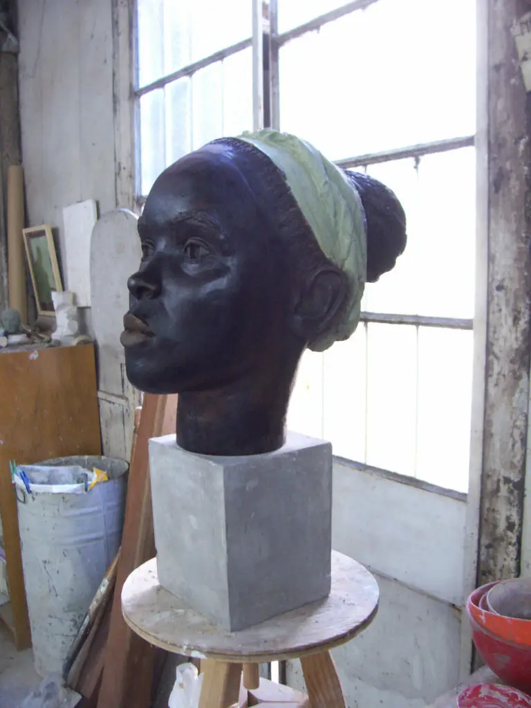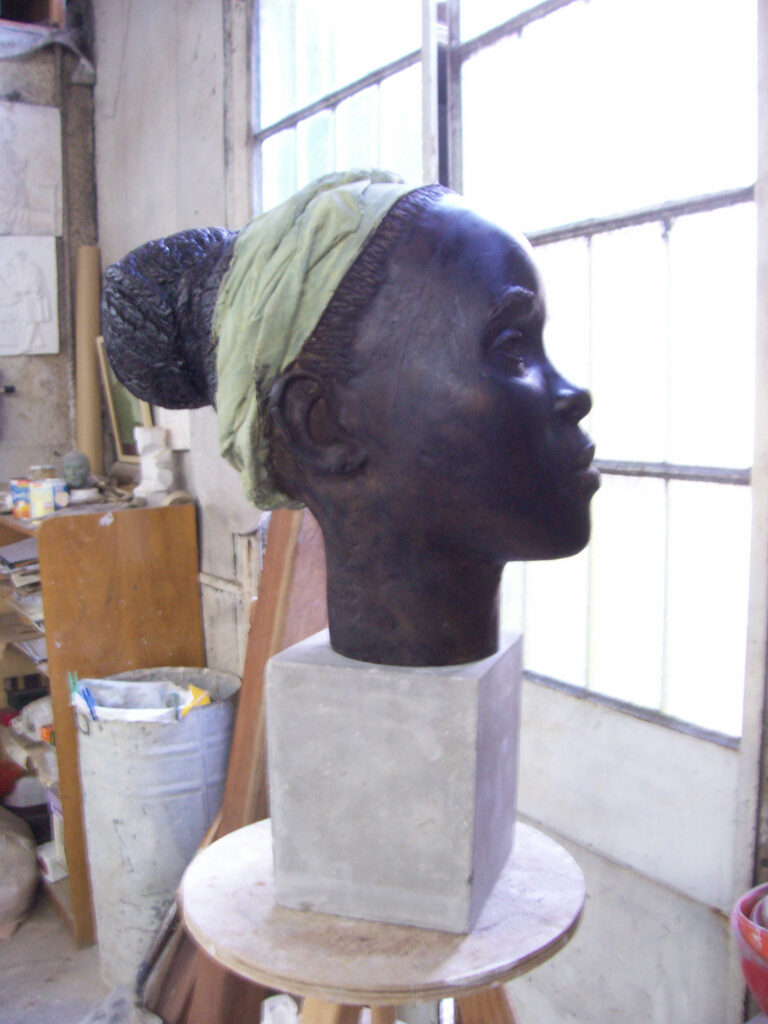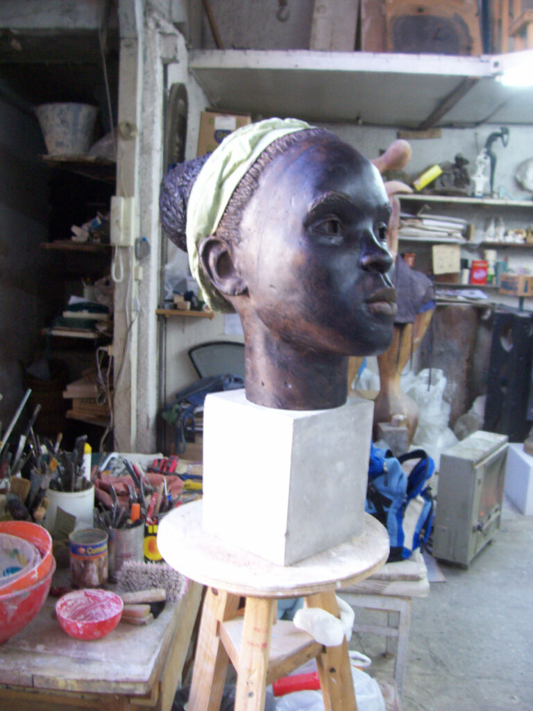 Escute aqui a audiodescrição do Busto da Mestra Janja Rosangela Janja Costa Araújo é mestra de Capoeira Angola, co-fundadora e coordenadora do Instituto Nzinga e Estudos da Capoeira Angola e Tradições Educativas Banto no Brasil (INCAB), organização política de capoeira com trinta anos de atuação, desenvolvendo trabalhos em diversas cidades do Brasil e no Exterior.. …Mestra Tonha Rolo do Mar (audiodescrição)